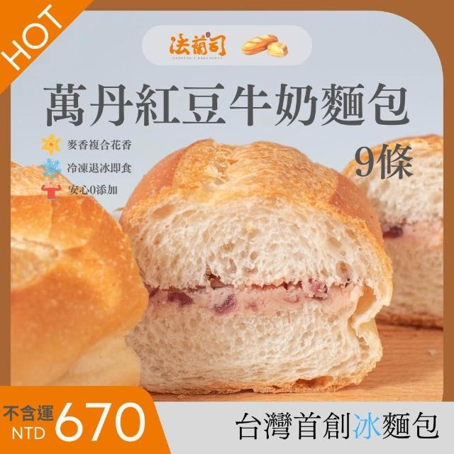 法蘭司萬丹紅豆維也納牛奶麵包9條(台灣冰麵包創始品牌開賣20年日銷千條的排隊麵包台北門市限定)