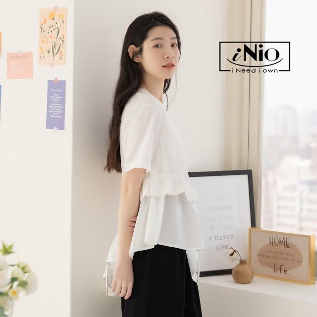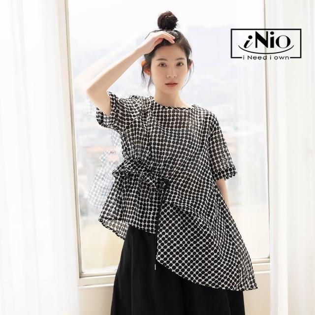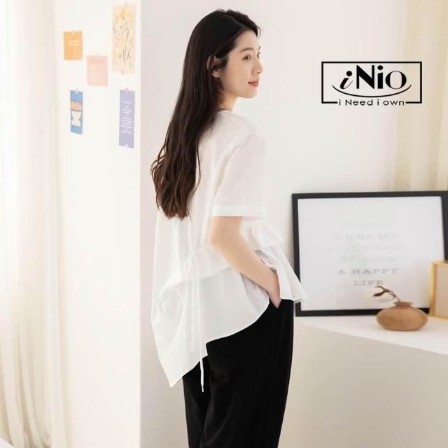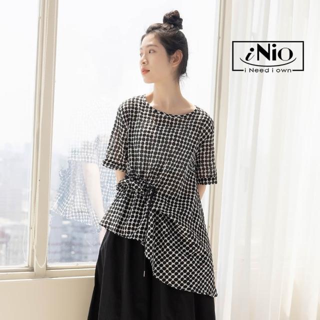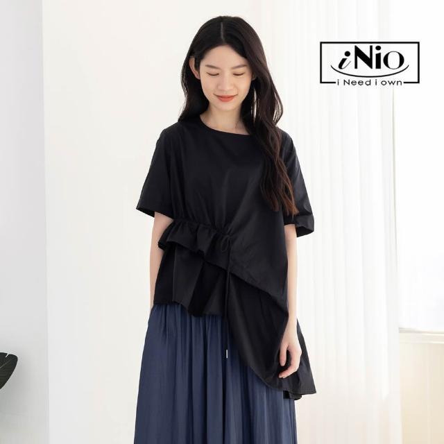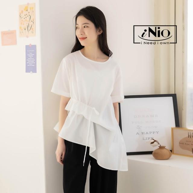 iNio 衣著美學短袖上衣 不對稱 斜襬剪裁 圓領 短袖棉T CCW1082