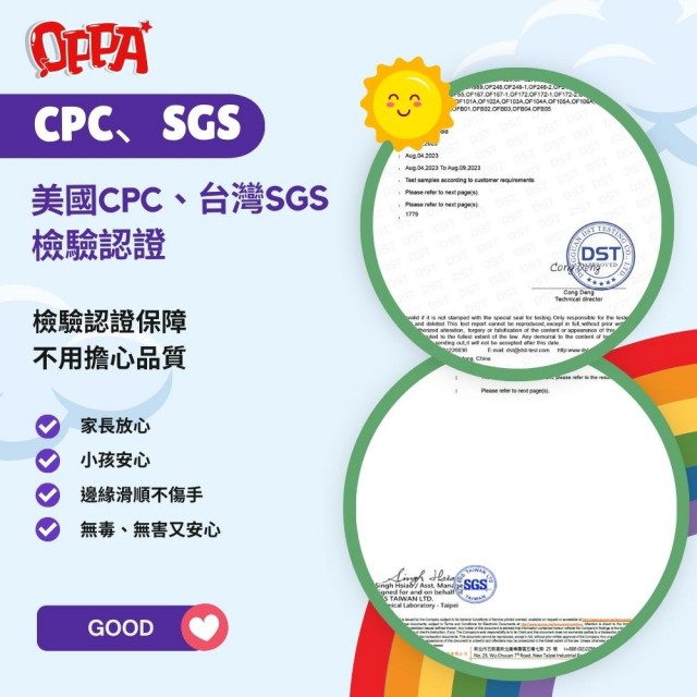 - 美國CPC、台灣SGS檢驗認證