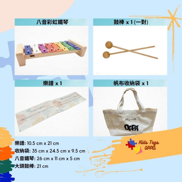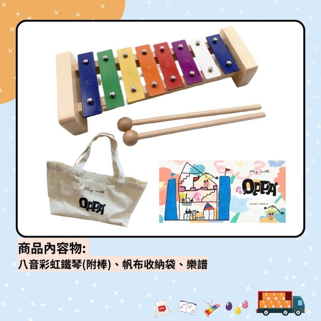 OPPA八音彩虹鐵琴組|帆布袋 樂譜 鐵琴|兒童樂器 幼兒律動樂器|奧福樂器 OF55美國CPC、台灣SGS檢驗認證