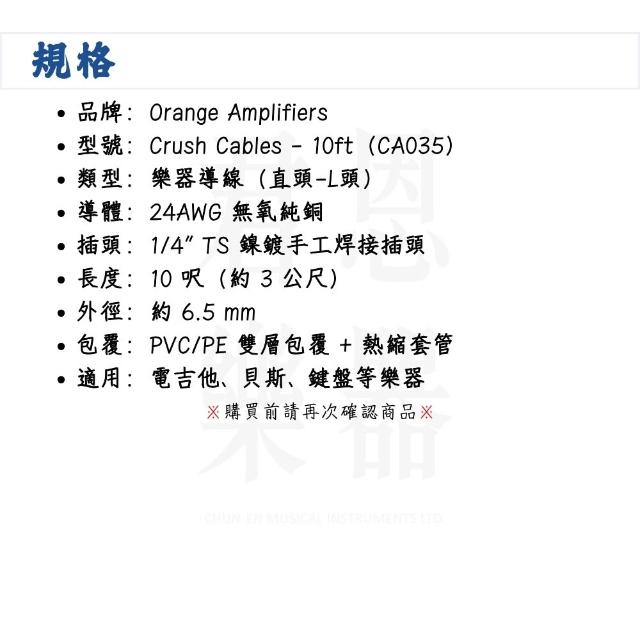 ORANGECrush Cable 10FT樂器導線 直L頭|專屬英倫血統(CA035 電吉他導線 貝斯導線 KB導線 錄音)