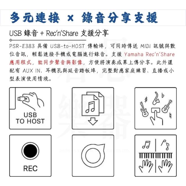 Yamaha 山葉音樂PSR-E383 手提式電子琴|為音樂而進化(電鋼琴 電子鋼琴 數位鋼琴 KB 新手電子琴 社團琴)