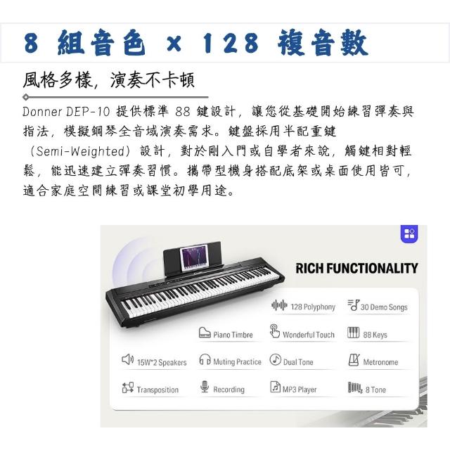 DonnerDEP-10 88鍵半配重電鋼琴|極簡不凡 (電子琴 數位鋼琴 攜帶式 平台式 KB 初學者 初學者鋼琴 團購琴)