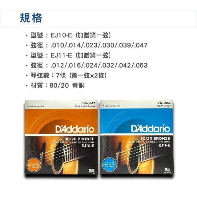 D’Addario卓越品質首選 80/20黃銅木吉他弦|EJ10-E EJ11-E吉他弦 民謠吉他弦 Strings 琴弦