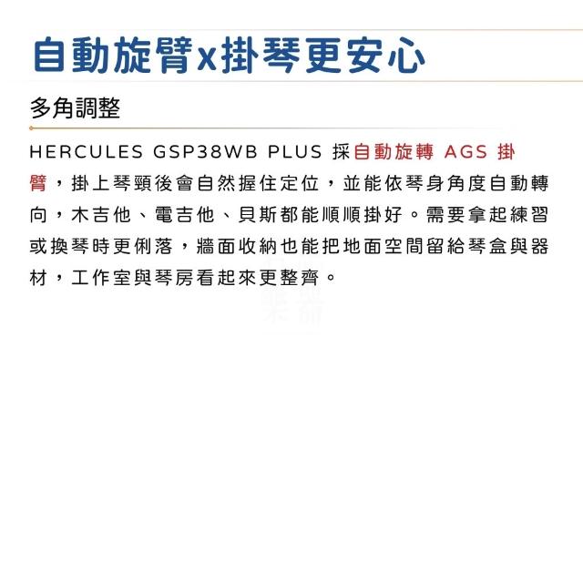 Hercules 海克力斯GSP38WB PLUS 吉他壁掛架 四款色系|穩固可靠的支撐(貝斯架 樂器架 吉他架 琴架 烏克麗麗架)