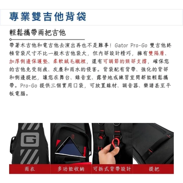GATOR CASESPro Go Series Gig Bag 二合一雙吉他琴袋 防潑水|樂器守護者(電吉他袋 民謠吉他袋 樂器袋 吉他袋)