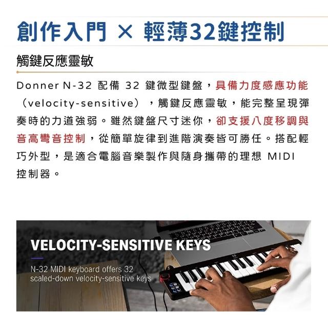 DonnerN-32 迷你32鍵MIDI鍵盤|極簡不凡(N32 數位鍵盤 錄音鍵盤 編曲鍵盤 KB 電子琴 創作)