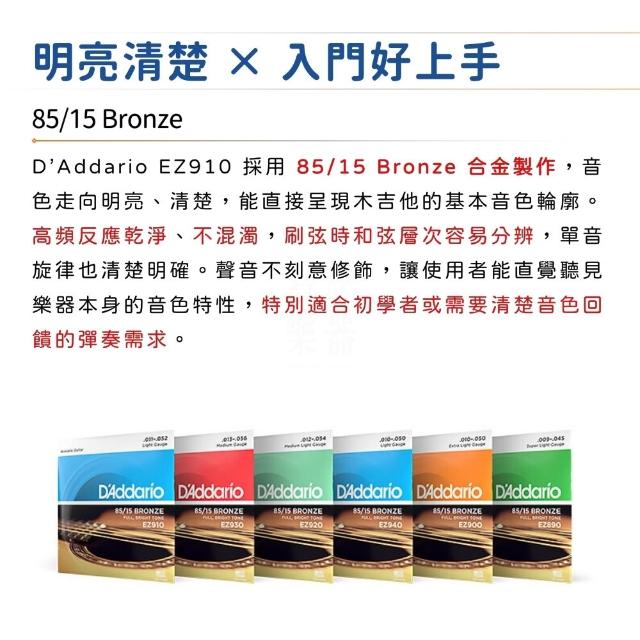 D’AddarioEZ910 木吉他弦 11-52 黃銅|卓越品質首選(85/15 民謠吉他弦 琴弦 黃銅合金 青銅)