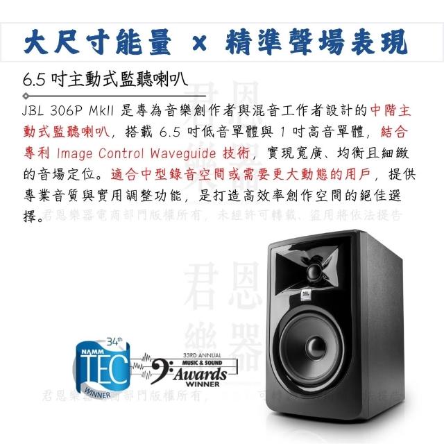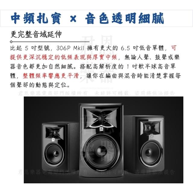 JBL306P MKII 6.5吋主動式監聽喇叭 一對|混音信任之聲(錄音室 家用 音響 電競 直播 播客 混音 桌上型喇叭)