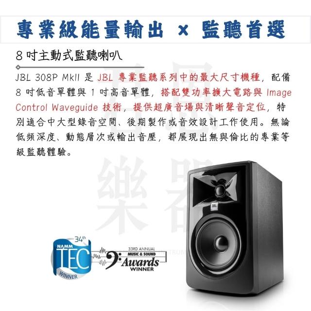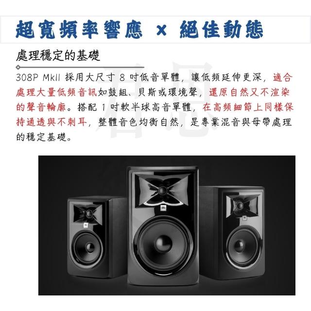 JBL308P MKII 8吋主動式監聽喇叭 一對|混音信任之聲(錄音室 家用喇叭 音響 電競 直播 播客 混音 桌上型喇叭)
