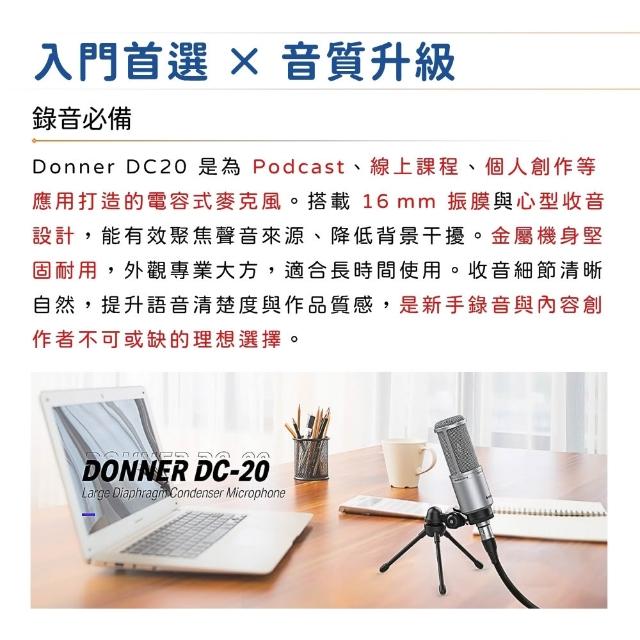 DonnerDC-20 電容式麥克風 全配件|極簡不凡(新手也能快速使用 DC20 錄音 收音 直播 配音 會議 播客)