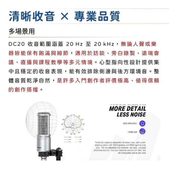 DonnerDC-20 電容式麥克風 全配件|極簡不凡(新手也能快速使用 DC20 錄音 收音 直播 配音 會議 播客)