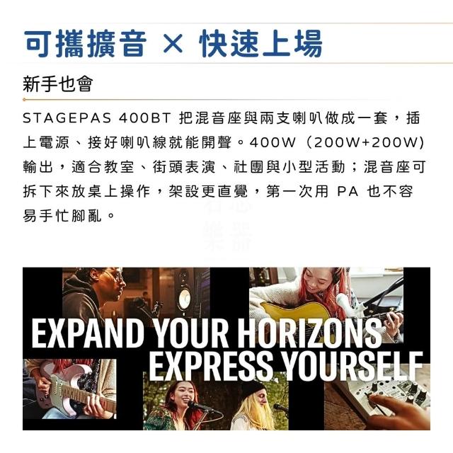 Yamaha 山葉音樂STAGEPAS 400BT 攜帶型PA系統|為音樂而進化(錄音 混音 演出 音箱 音響 藍芽 麥克風 前級 幻象電源)