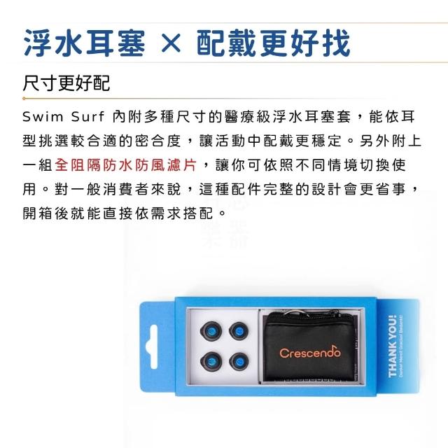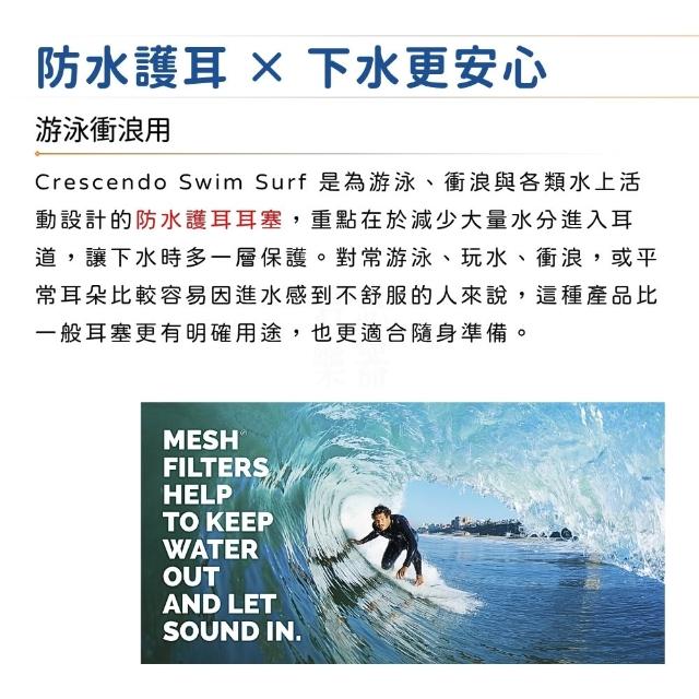 CrescendoSwim Surf 防水高保真隔音降噪耳塞 游泳/水上活動專用|聽覺濾境專家(衝浪 玩水 保護)