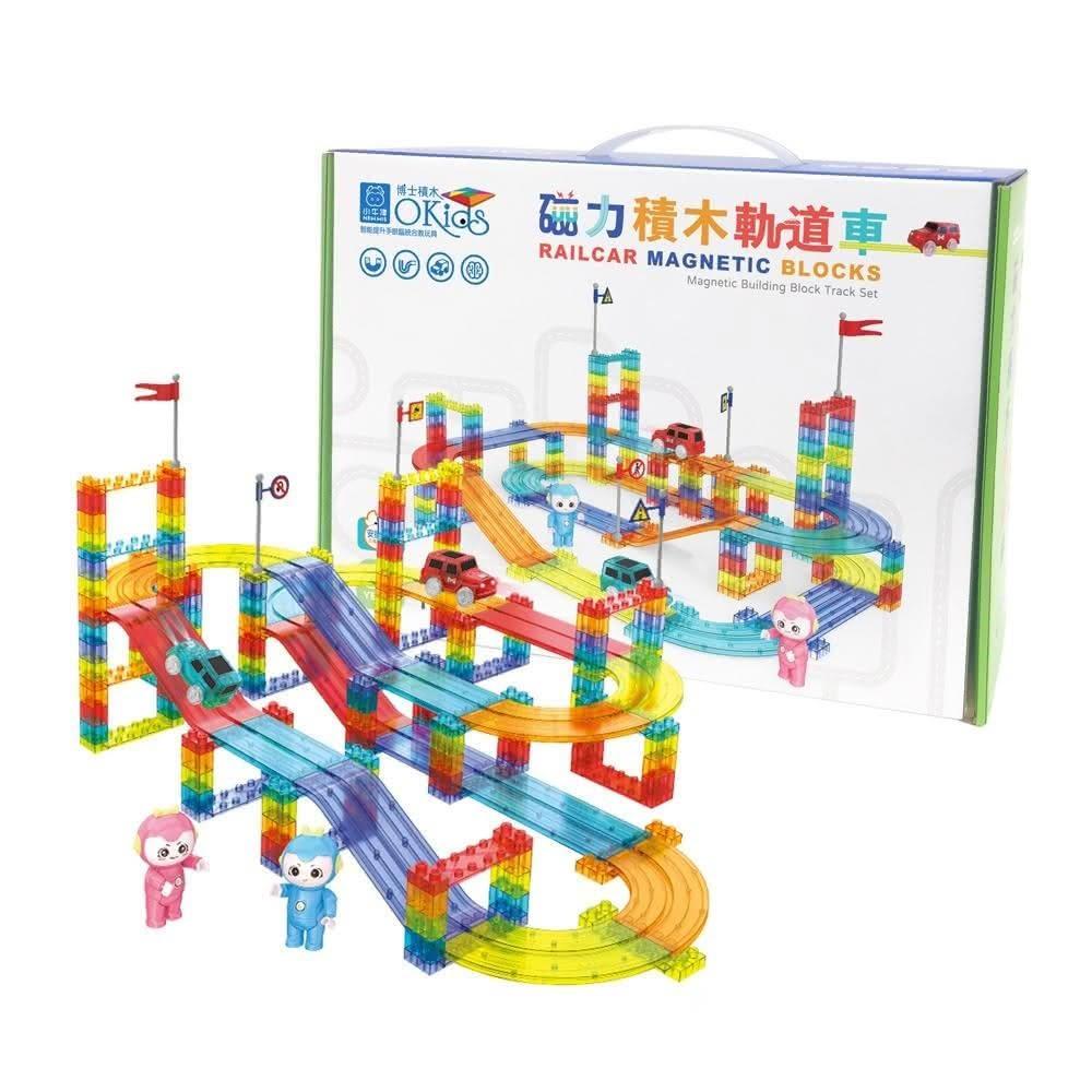 小牛津Okids博士積木 磁力積木軌道車-152pcs (積木+軌道+磁力片設計) ~可以玩賽車的磁力片!