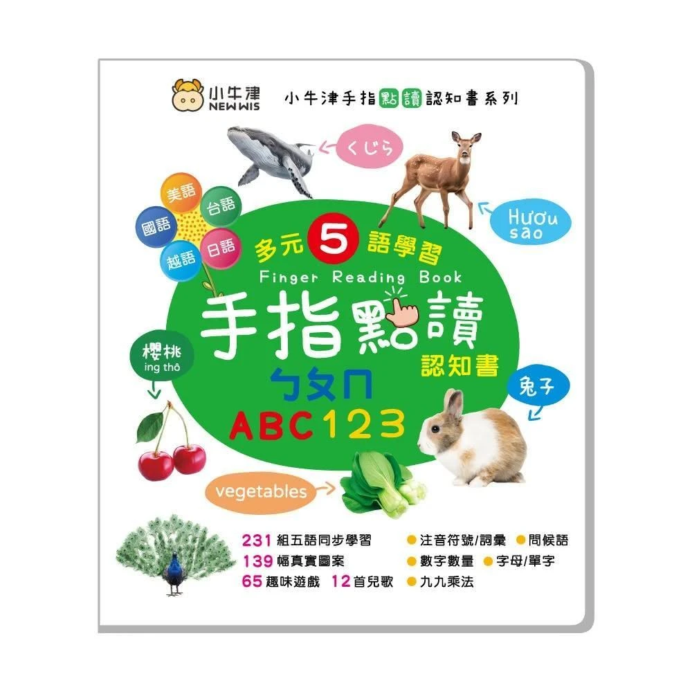 小牛津手指點讀認知書(ㄅㄆㄇ/ABC/123)~多元五語學習/有聲互動認知遊戲書
