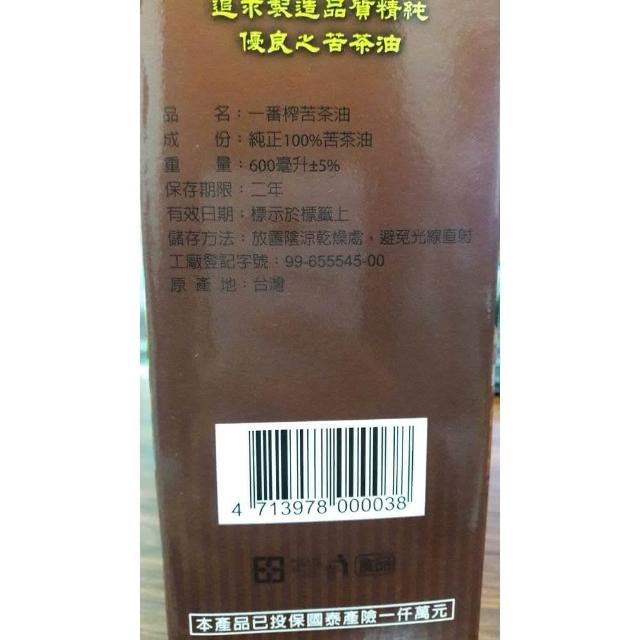 一番搾100%苦茶油600ml禮盒 3瓶 送5個苦茶皂(贈亞源泉系列商品2包)