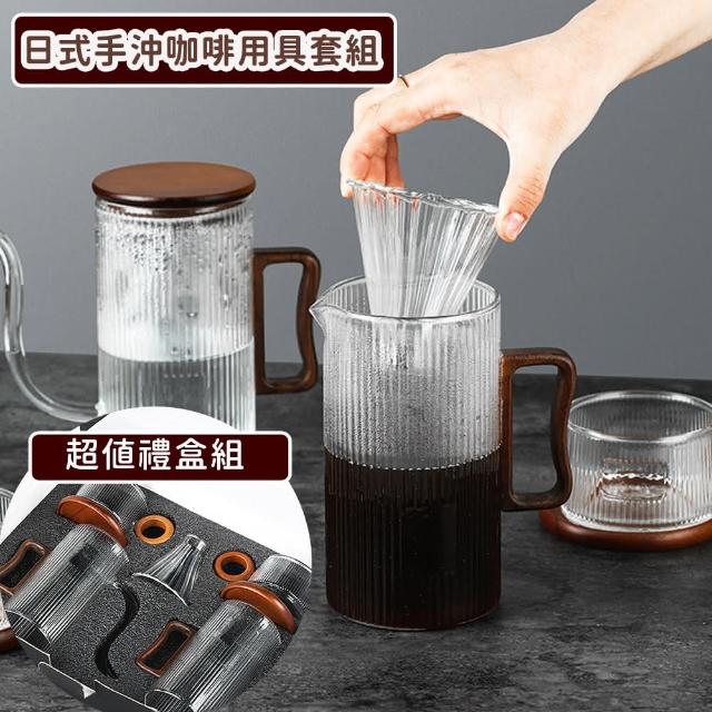 好拾物贈 限量大容量水壺2.2L 日式木質玻璃咖啡手沖5件組禮盒 玻璃手沖咖啡壺玻璃手沖壺 下壺 濾杯 咖啡杯x2
