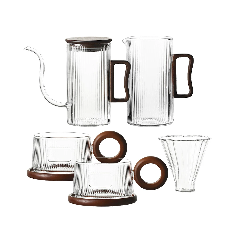 好拾物贈 限量大容量水壺2.2L 日式木質玻璃咖啡手沖5件組禮盒 玻璃手沖咖啡壺玻璃手沖壺 下壺 濾杯 咖啡杯x2
