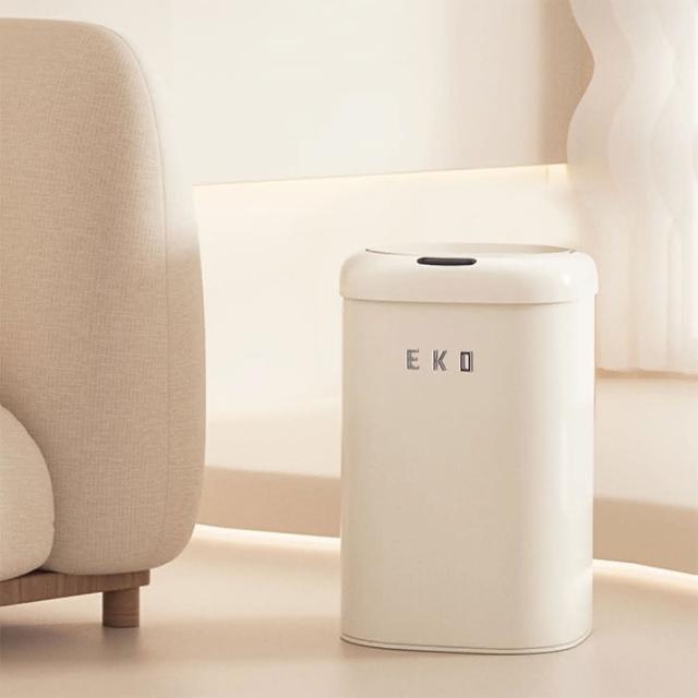 EKO贈 限量大容量水壺2.2L 家用全自動時尚復古款 智能垃圾桶 感應式垃圾桶9L奶油白