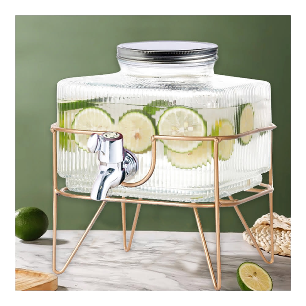 好拾物日本FOREVER 桌上玻璃飲料桶3.5L附龍頭+鐵架 派對桶 飲水壺 果汁桶 泡酒瓶 冷水桶 派對桶 中秋烤肉