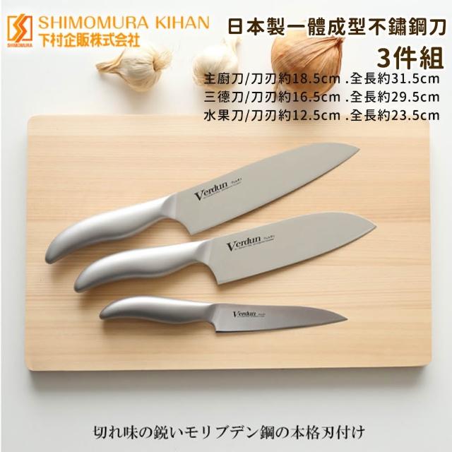 下村工業日本製一體成型不鏽鋼刀 三德刀 水果刀 菜刀三德刀3件組 中秋烤肉