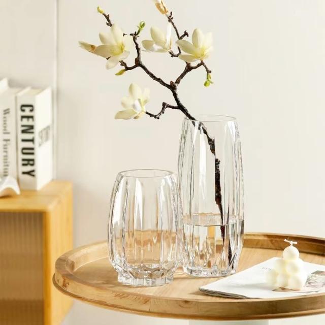 好拾物北歐輕奢款豎紋長型玻璃花瓶 插花瓶 乾燥花花瓶 花器 水培容器