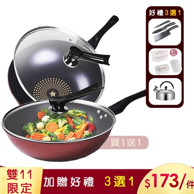 好拾物晶鑽超輕量32CM+32CM 不沾雙鍋+雙蓋4件組|買一送一 炒鍋 鍋具
