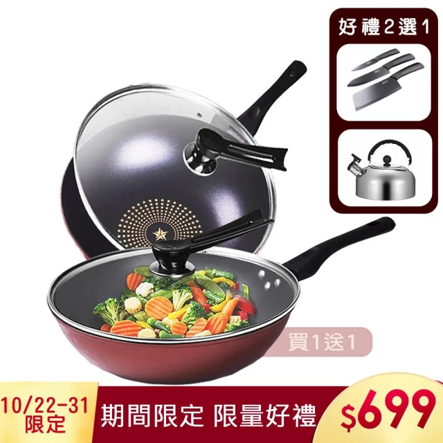 好拾物晶鑽超輕量32CM+32CM 不沾雙鍋+雙蓋4件組|買一送一 炒鍋 鍋具