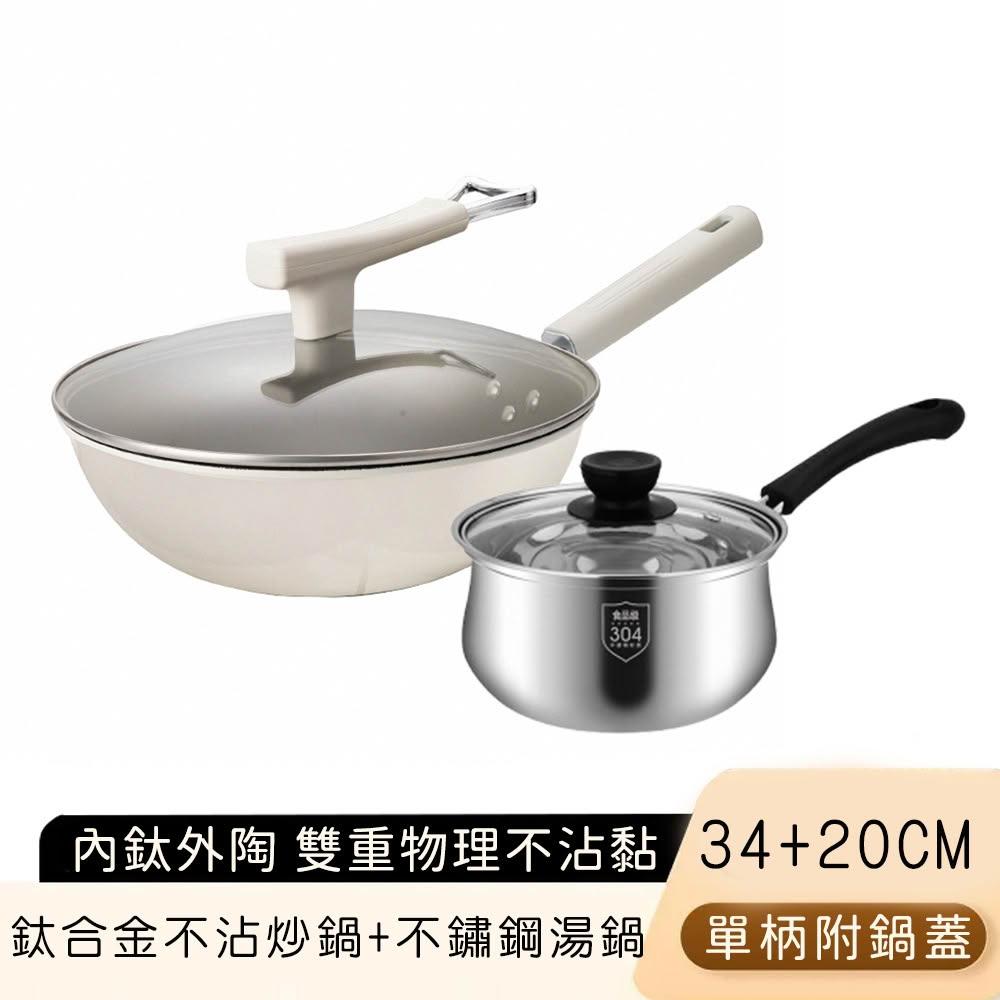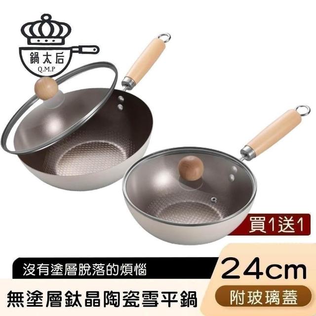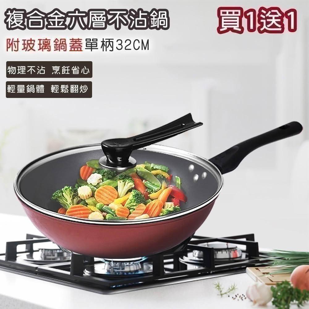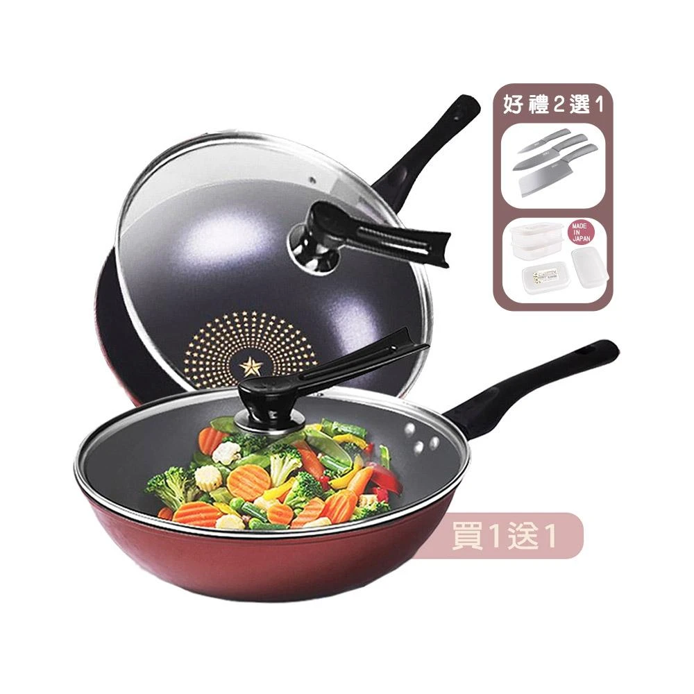 好拾物晶鑽超輕量32CM+32CM 不沾雙鍋+雙蓋4件組|買一送一 炒鍋 鍋具