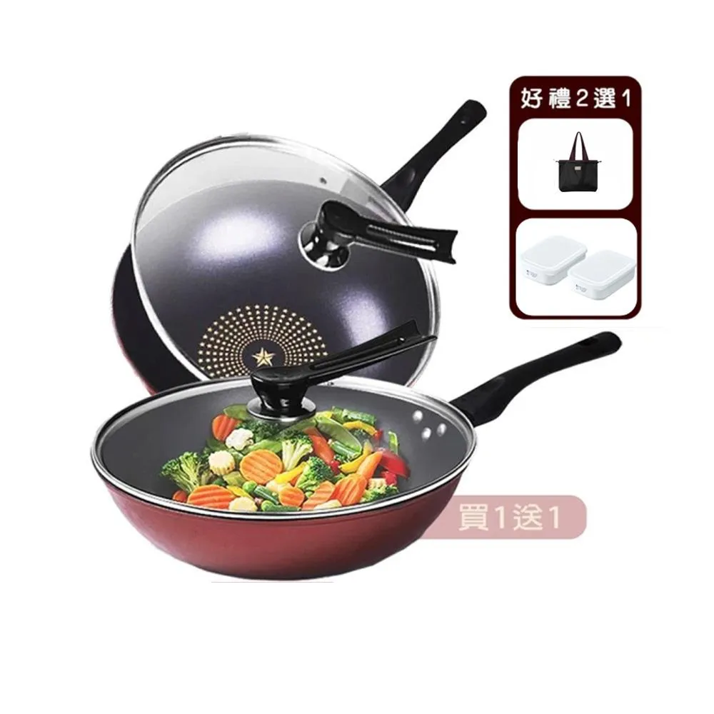 好拾物晶鑽超輕量32CM+32CM 不沾雙鍋+雙蓋4件組|買一送一 炒鍋 鍋具