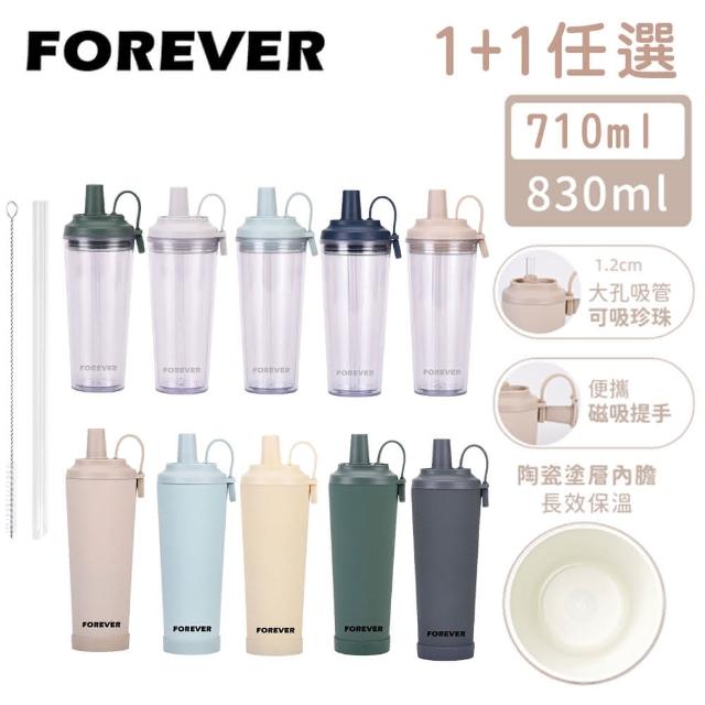 好拾物日本超值吸管杯1+1 Tritan透明杯710ml+雙層陶瓷杯830ml 吸管杯 隨行杯 保冰保溫杯 保溫瓶