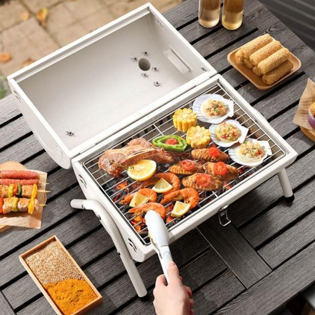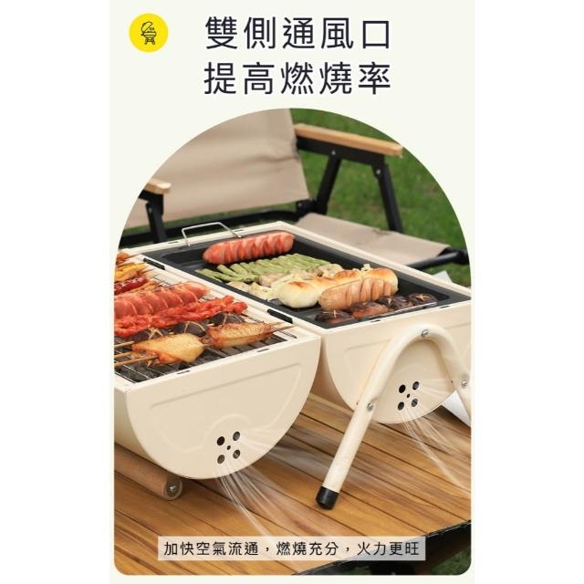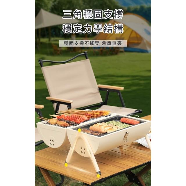 好拾物BBQ 烤肉架 露營燒烤爐|輕量手提式設計46×28×35cm|鐵烤網+木提把|露營燒烤爐 手提烤爐 便攜烤 中秋烤肉