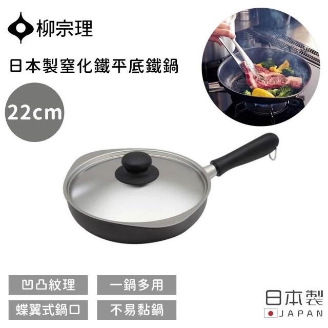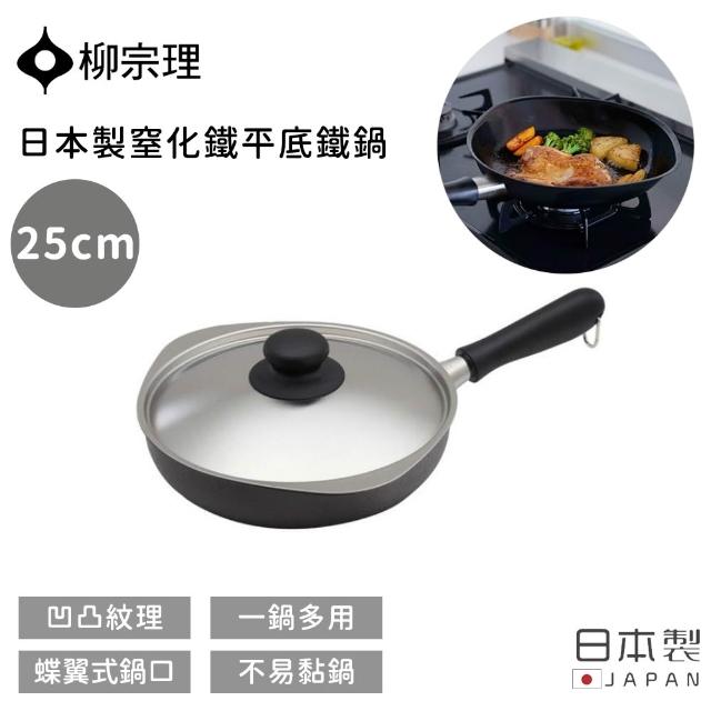 柳宗理日本製窒化鐵平底鐵鍋 22cm/25cm|窒化處理/不沾凹凸紋/蝴蝶鍋口|鐵鍋推薦、柳宗理平底鍋、日本鐵鍋 中秋烤肉