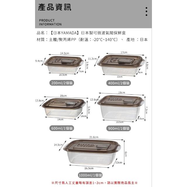 好拾物YAMADA 日本製可微波 氣閥保鮮盒|PP5 BPA FREE 耐熱140°C/耐冷-20°C|連蓋排氣微波 可冷凍