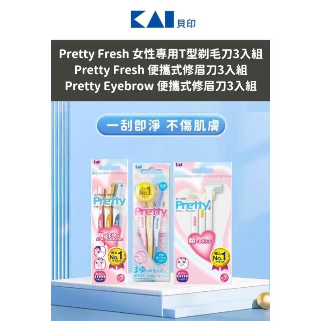 KAI 貝印Pretty Fresh 日本製女性修眉刀/T型剃毛刀 3入組|附安全護蓋 抗菌手柄|修眉 修容