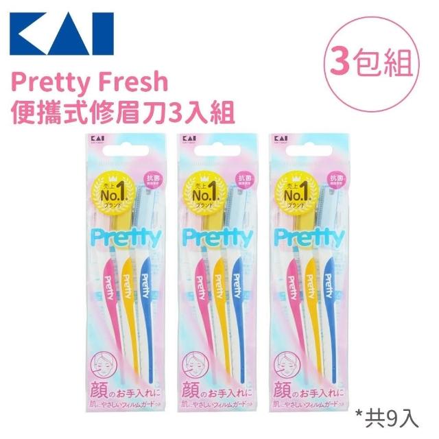 KAI 貝印Pretty Fresh 日本製女性修眉刀/T型剃毛刀 3入組|附安全護蓋 抗菌手柄|修眉 修容