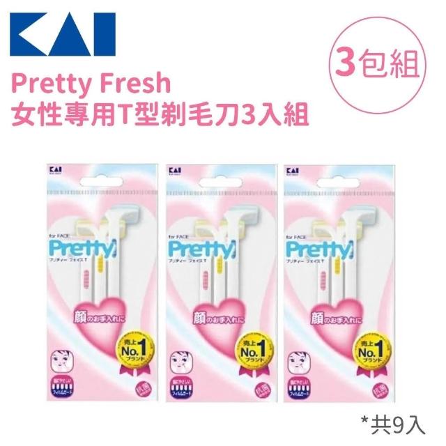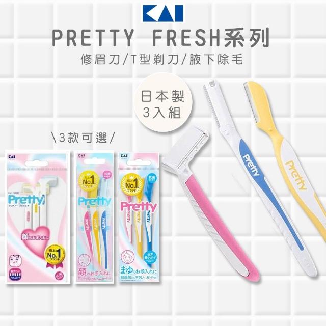 KAI 貝印Pretty Fresh 日本製女性修眉刀/T型剃毛刀 3入組|附安全護蓋 抗菌手柄|修眉 修容