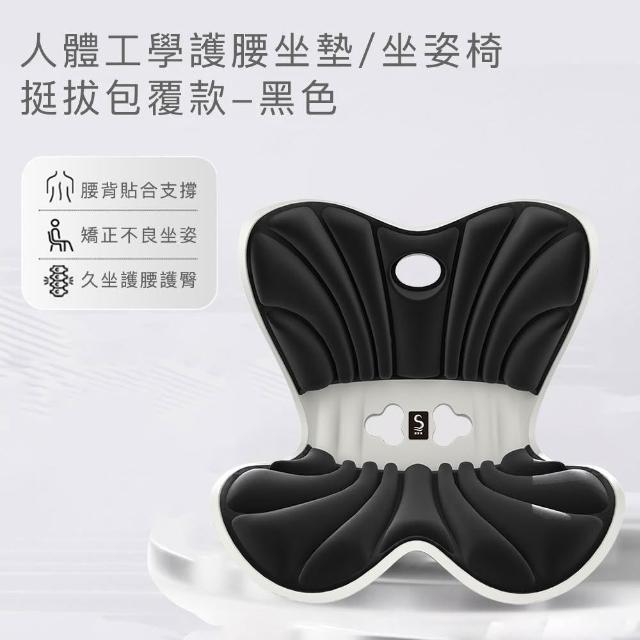 好拾物思菲其人體工學護腰坐墊|坐姿矯正椅 挺拔包覆款(灰/黑) 記憶棉透氣 久坐減壓| 護脊坐墊,辦公久坐靠墊,開車坐墊
