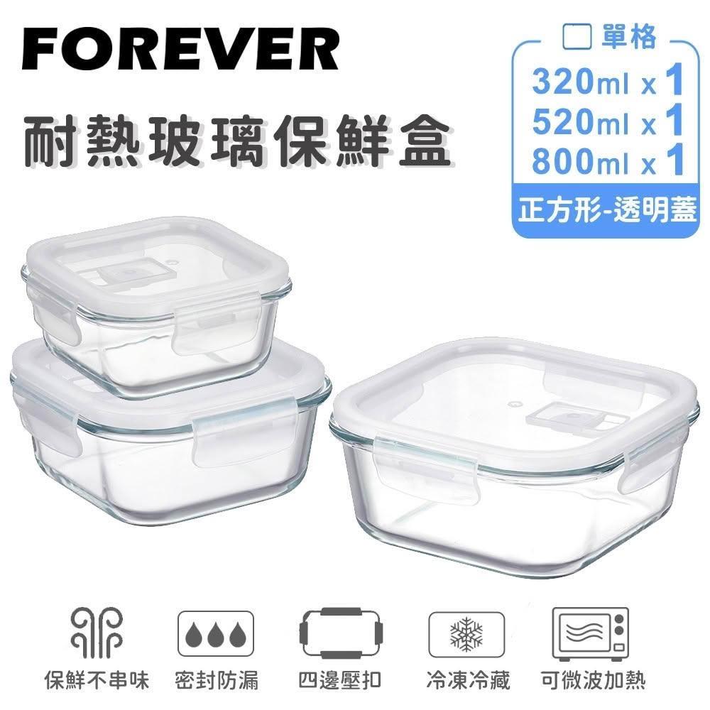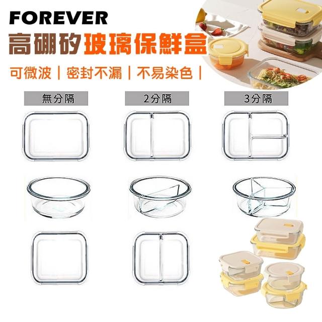 日本FOREVER 玻璃保鮮盒 圓形/方形/長方形 (單/雙/多分格)高硼矽耐熱玻璃 可微波|健康減脂餐盒/分隔便當盒