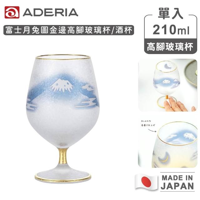 ADERIA石塚硝子 日本製 富士月兔金邊高腳杯210ml|過年送禮 酒杯 紅酒杯 氣泡水杯 禮盒裝