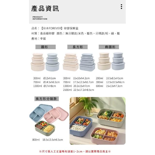 好拾物日本FOREVER矽膠保鮮盒 多款可選 FDA合格|圓型/長方型/分隔/橢圓 食品級矽膠 微波便當盒 冷凍冰箱收納盒