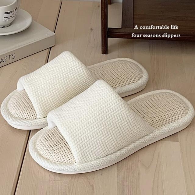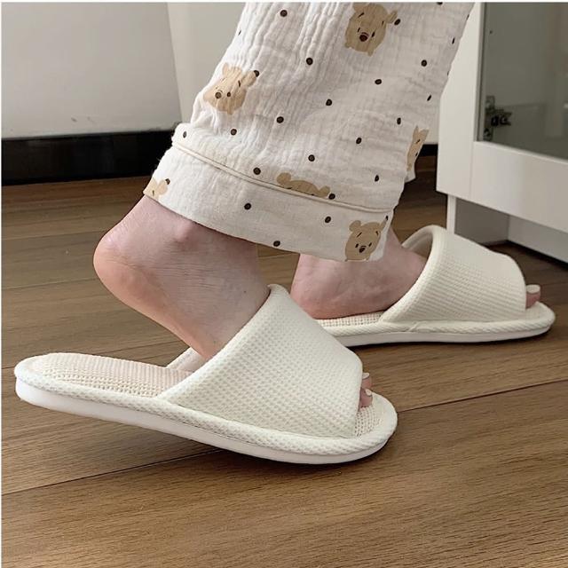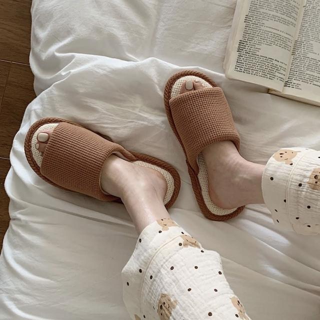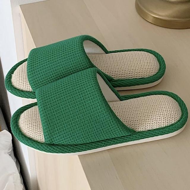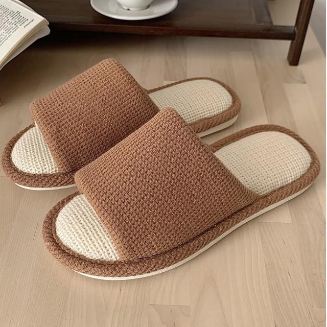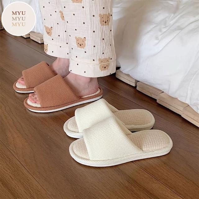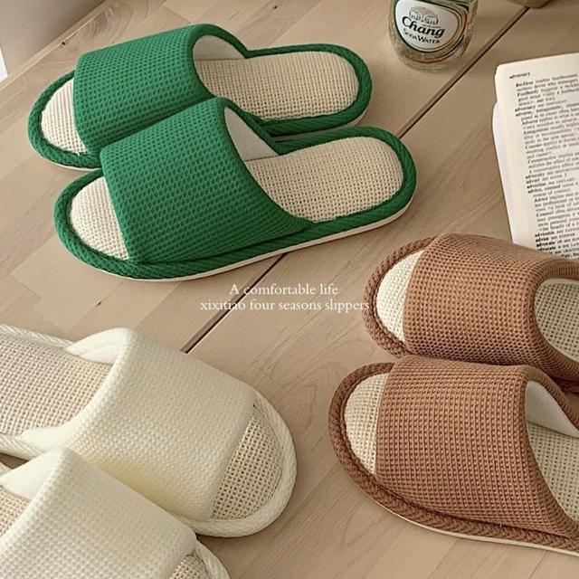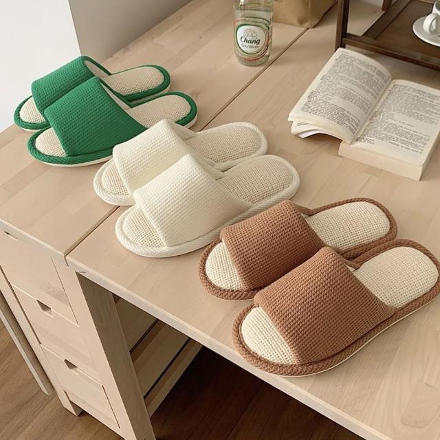 MYUMYU 沐慕家居華夫格超軟棉麻室內居家拖鞋 一雙組奶白/咖啡/青草綠