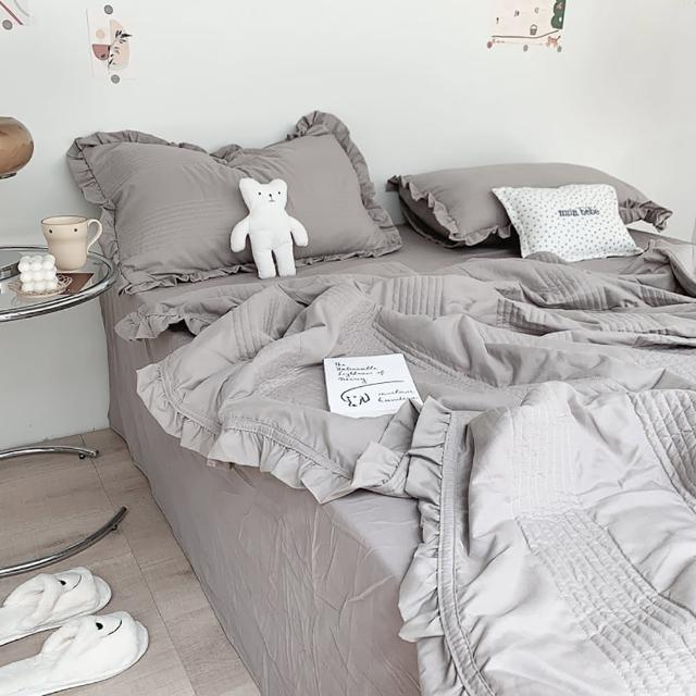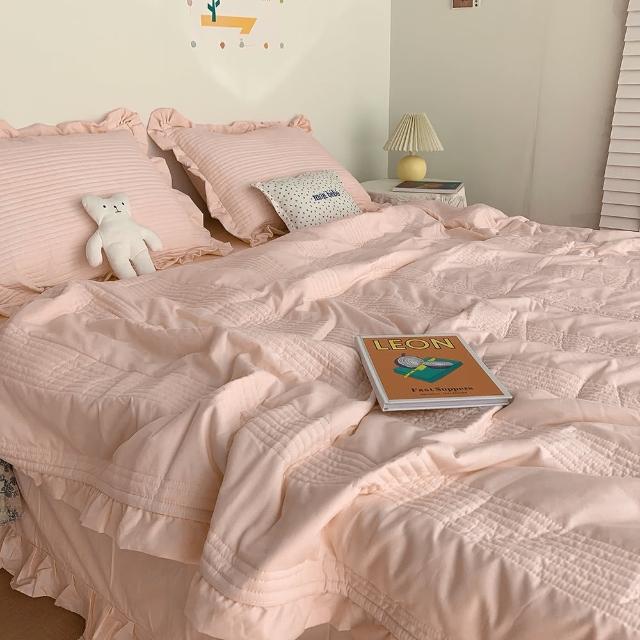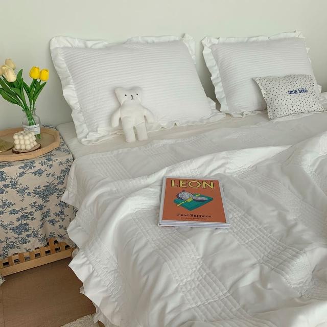 MYUMYU 沐慕家居韓系素色壓紋花邊夏被涼被/薄被/棉被