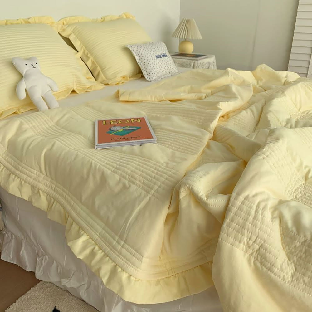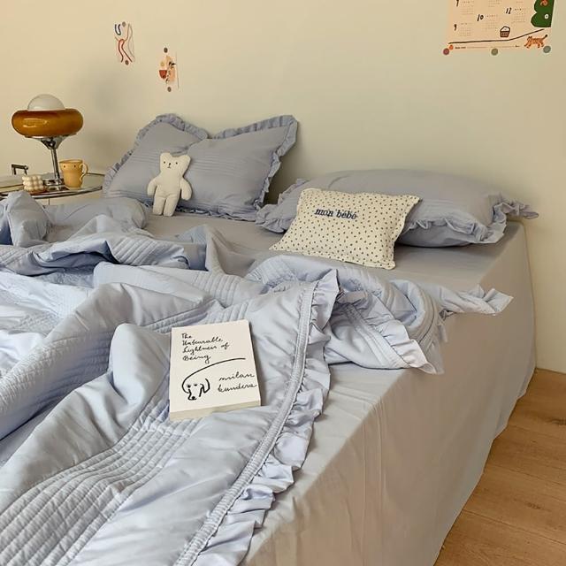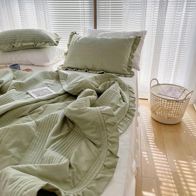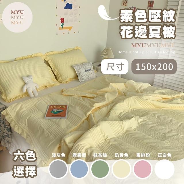 MYUMYU 沐慕家居韓系素色壓紋花邊夏被涼被/薄被/棉被
