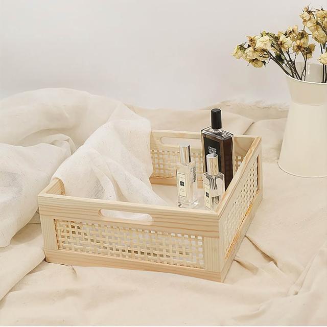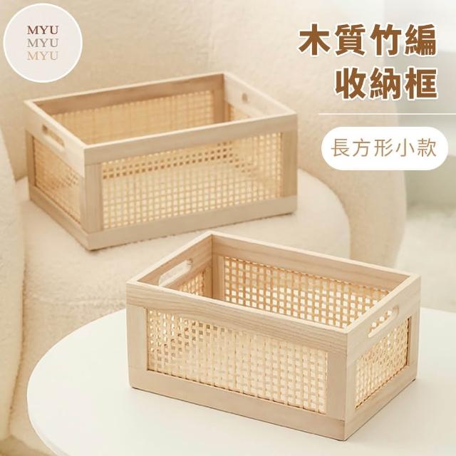 MYUMYU 沐慕家居長方形小款 藤編收納盒 木質竹編帶把手桌上收納框收納籃/雜物收納/可堆疊收納交換禮物 聖誕禮物