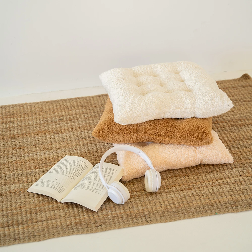 MYUMYU 沐慕家居簡約奶茶色毛絨坐墊靠墊 一入抱枕 方形坐墊 靠枕
