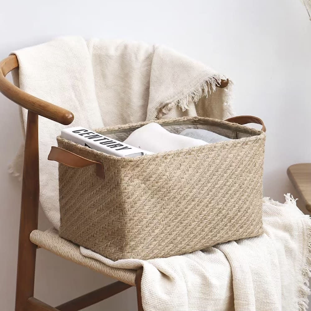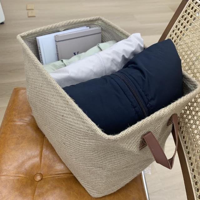 MYUMYU 沐慕家居棉麻收納籃手提置物 收納籃 置物籃 防水收納籃 可折疊交換禮物 聖誕禮物