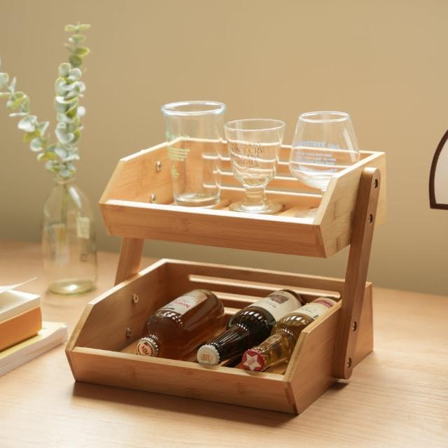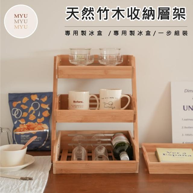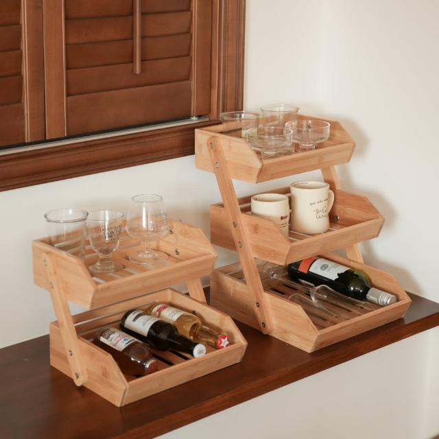 MYUMYU 沐慕家居日系天然竹木三層收納層架 兩層架 廚房收納層架 紅酒架 置物架 多層架 桌上收納交換禮物 聖誕禮物