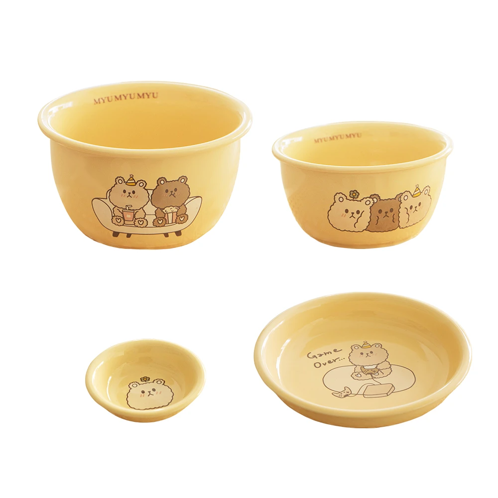 MYUMYU 沐慕家居小熊碗盤4件組熊熊 杯子 陶瓷碗 碗盤 陶瓷盤 碗盤器皿 碗 醬油碟 陶瓷杯交換禮物 聖誕禮物